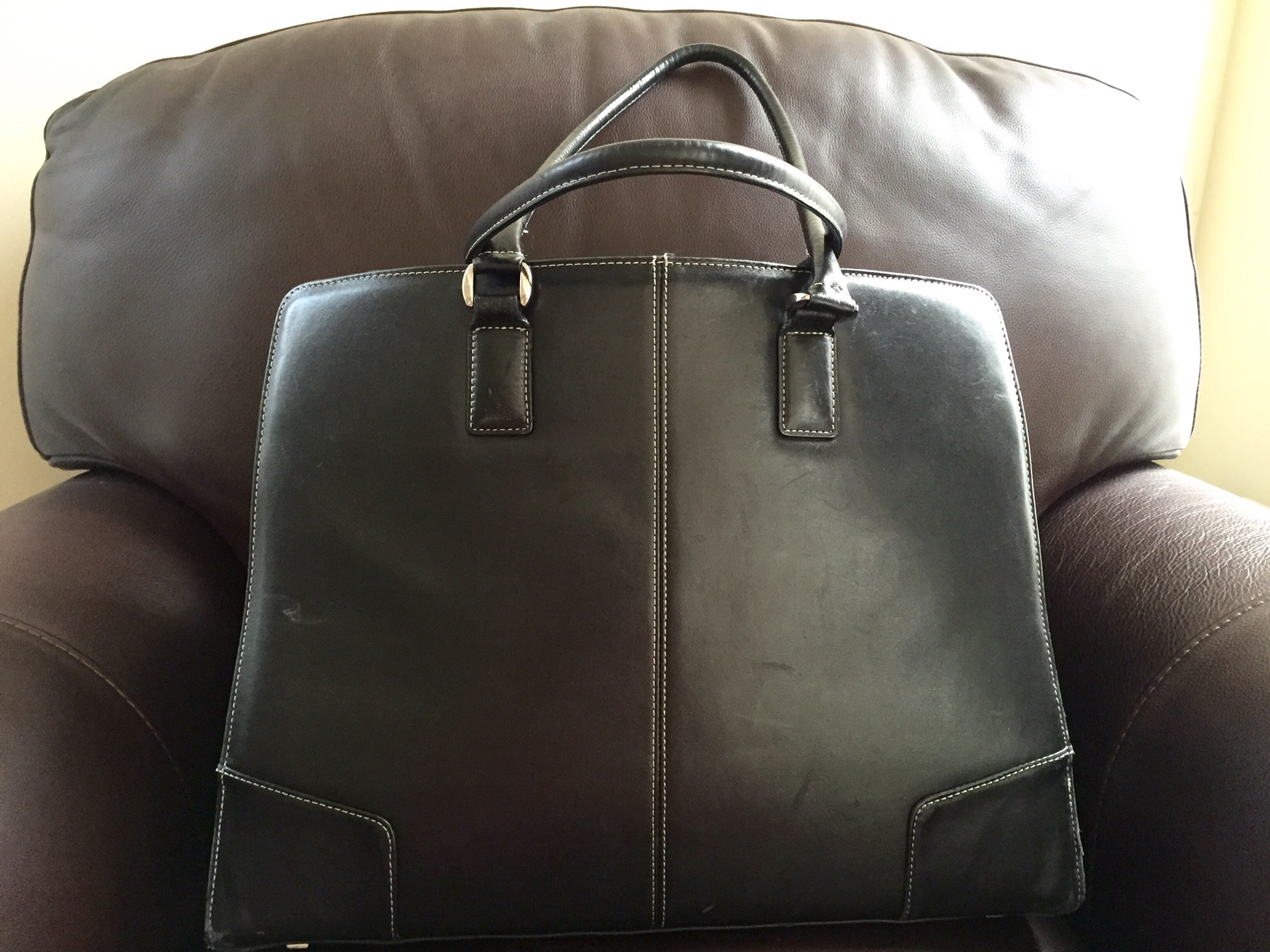 Then I became a full time educational consultant and I began traveling every week for my job. A purse was an extra carry on and since you are only allowed two (and I never wanted to check my bags) I found throwing my personal effects into my work bag was a great solution. My work bags evolved over the years from a briefcase with wheels (to carry an oversized projector) to designer computer bags. My bags became worn from travel and from me over stuffing them with consultant request forms, presenter notes, snacks and a heavy laptop. I found myself buying a new one every year. As the laptops got smaller and lighter, my bags got smaller and more stylish. Sometimes I stepped out of my comfort zone and bought a bright red bag instead of basic black.