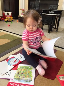 I began taking my daughter to the library when she was only a few months old. I registered her for free baby time classes where the librarian led us through bouncy rhymes and songs and read us an occasional book. The best part of the class was free play when the librarian got out toys and the babies had free reign with the nesting cups, rubber ducks and cloth balls. It was a great opportunity for my daughter to socialize with the other babies.