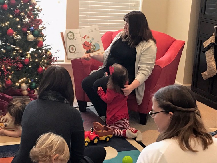 This year I shared the story of Santa Mouse with Lillian and her friends. A few days before Christmas I hosted a Christmas party for the “library girls.” Feeling rather brave, I invited eight two-year olds over for a Christmas themed play date. I wish I could say I handled all eight by myself but I need to add that their mommies were also invited. After feasting on bagels and fruit, playing with cinnamon scented play dough and coloring Christmas images, I invited everyone to sit around the Christmas tree in our great room and I began reading the book, “Santa Mouse.”