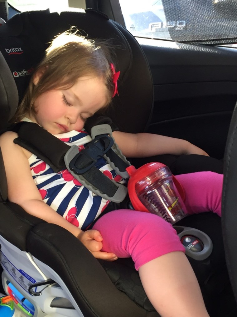Although I have read the worst thing to do is to give in to her demands, out of pure desperation I have resorted to negotiation and pure bribery. The incident occurred in the garage on a sunny Tuesday morning in May. Feeling accomplished after passing the first hurdle of getting her dressed, she suddenly stalled when we got to the car by refusing to get buckled into her car seat. She arched her back, kicked her legs and cried, “No Mommy, no!” Blood curdling screams accompanied by crocodile tears rang out of our garage. I’m surprised the lady taking a lesurly morning walk nearby didn’t call the police out of fear. I tried everything, “We can go to the park if you let mommy buckle you in… Girls who get buckled in their seats get a new Minnie Mouse toy.. Please sweet Jesus help me get this little person into the car seat! And after all of the drama and the sweat and the tears (from both of us) we never ended up leaving the house that day.