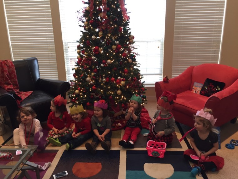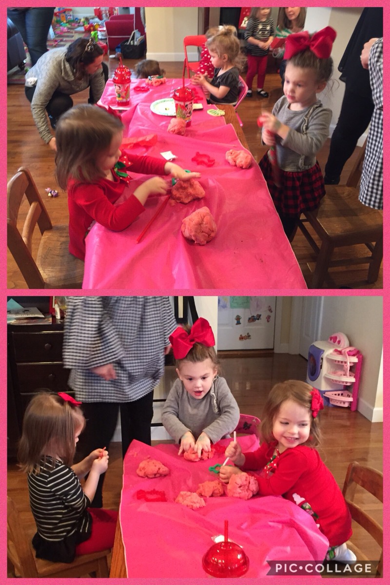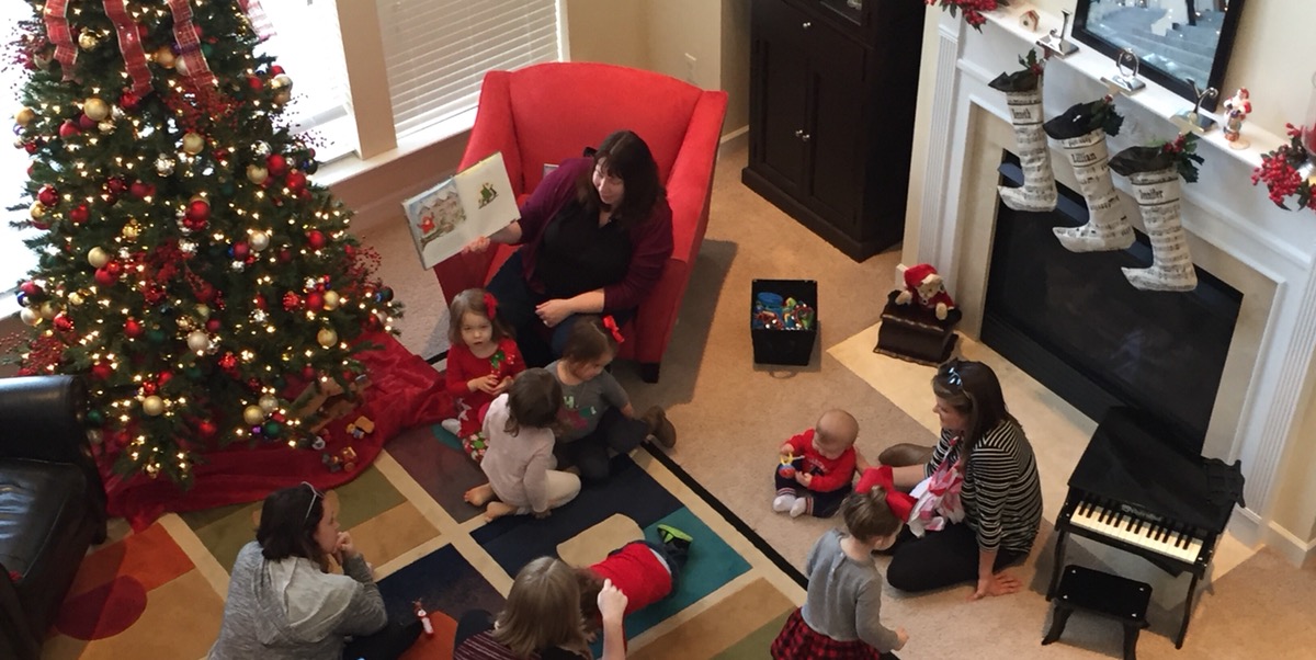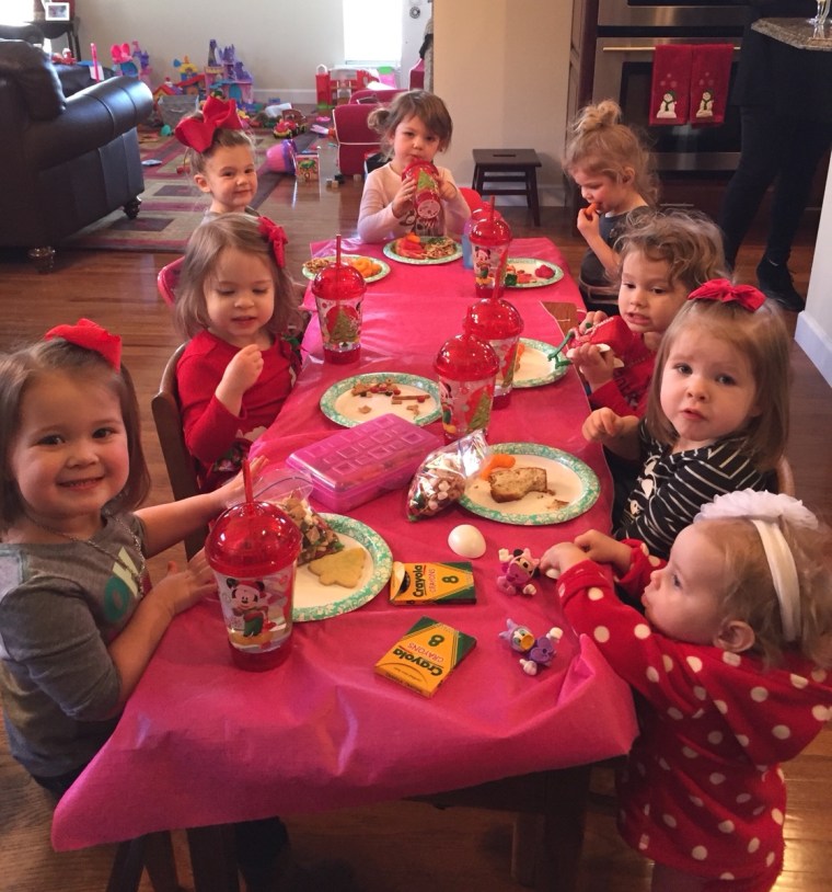 Yesterday I hosted a Christmas party “play date” for the “library girls.” Seven three-year olds, along with their mothers and three baby siblings, joined in the fun.