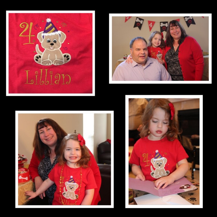 The Birthday Shirt- Whenever I need a custom shirt I run to Kim’s Boutique on Etsy. Kim worked with me to create this fabulous custom puppy shirt complete with the birthday girl’s name, age, birthday theme and color scheme. The birthday girl loved her shirt and wore it three days in a row! Kim is easy to work with, does quality work and the shirts arrive quickly.