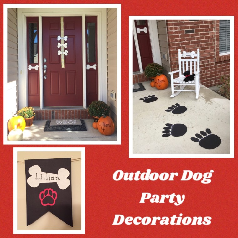 Our guests followed a paw print path as they made their way to the front door. On the front door was a dog bone banner announcing the birthday celebration.