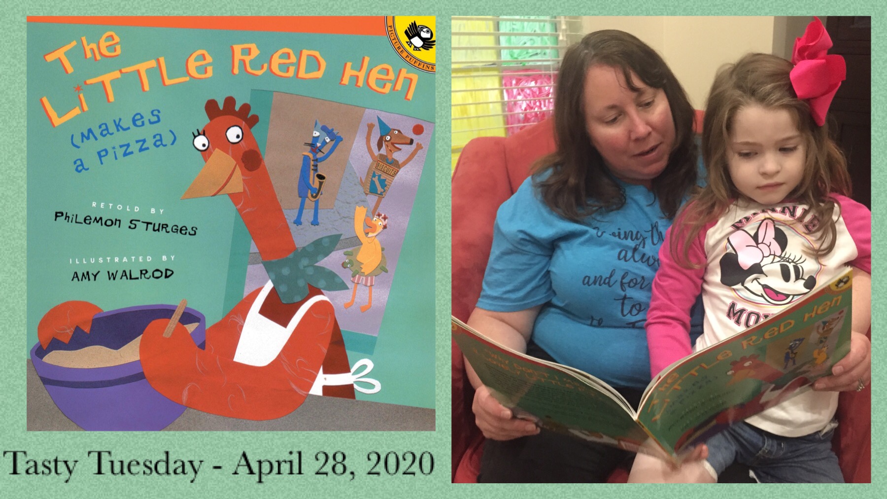 Pizza– My daughter and I made pizza for lunch. She topped her pizza to look like a funny face complete with pepperoni eyes, ears, and mouth, and dressed with cheese hair. My little one doesn’t like cooked cheese so that’s why her pizza face only had a wee bit of cheese hair. In keeping with the pizza theme we read one of our favorite books