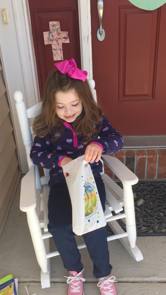 Holy Saturday– Today was supposed to be Immanuel Lutheran Church’s annual Easter egg hunt. I had signed my daughter up for the hunt and upon cancellation our sister church contacted me with the exciting news of delivering goodie bags to all of the families who planned on attending. My daughter beamed when she discovered the goodie bag on our front door. One of the gifts in the bag was the book, The Sunday Morning Miracle along with a companion activity book. I enjoyed reading the book to my daughter in preparation for Easter Sunday.