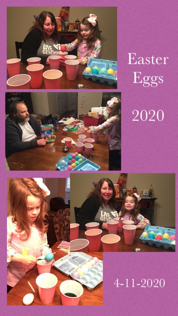 Easter Eggs– I have many wonderful memories of decorating Easter eggs with my father. When my daughter came along he continued the tradition with her. This year the quarantine kept us from decorating eggs with Pops so our family of three had a night of decorating instead.