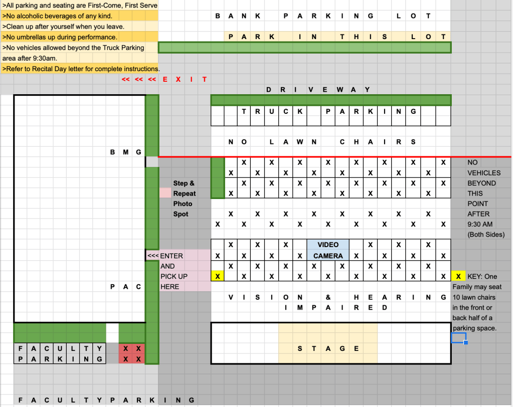 How Did They Do It?– They constructed a stage in PAC’s parking lot, laid out a detailed seating diagram, to ensure safe social distancing, and held nine separate showtimes throughout the day that consisted of eleven numbers each. Each show was live-streamed on-line for those who couldn’t come in person.