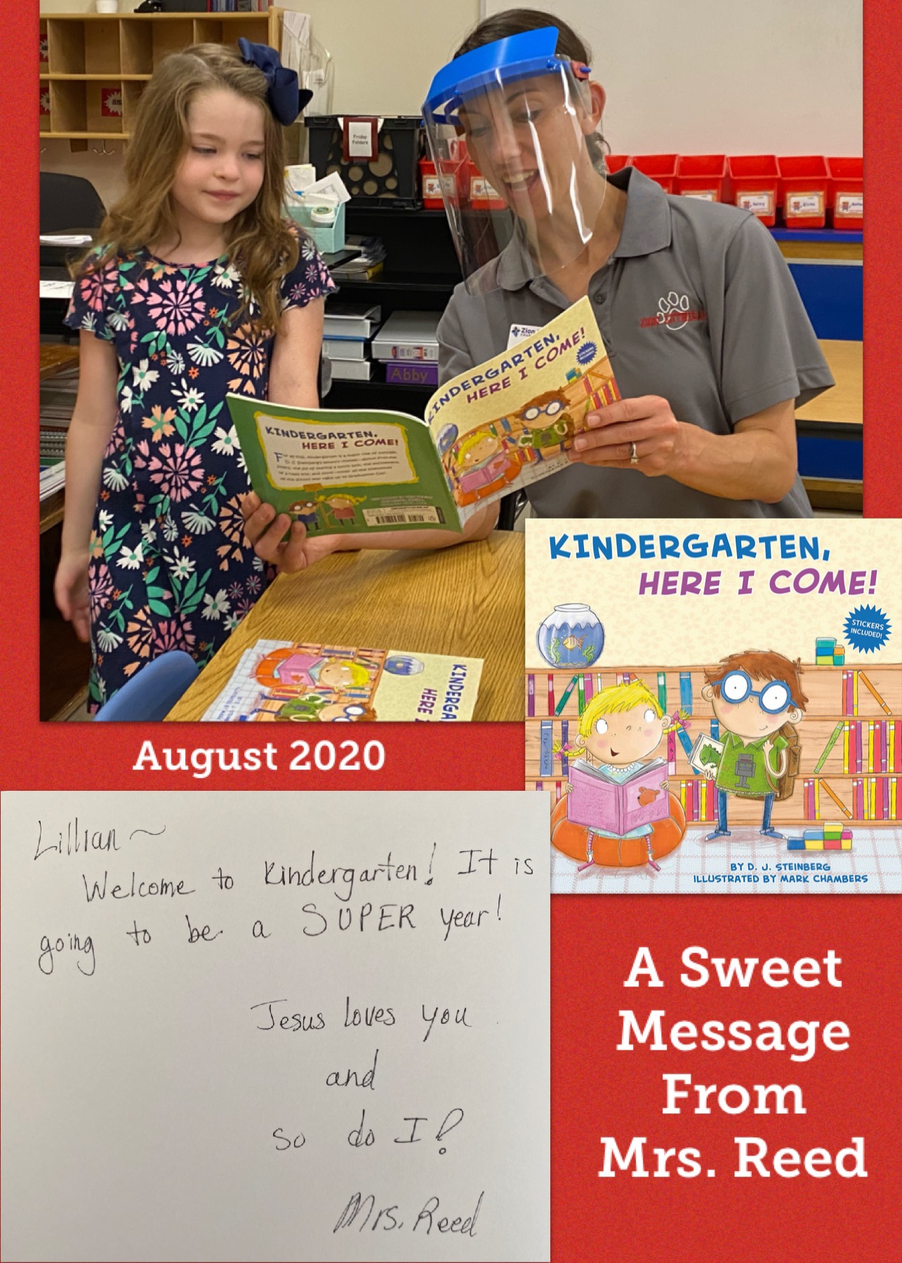 Last week my daughter and I went to school for a private “Meet the Teacher.” As we walked hand and hand down the familiar hallway (my daughter’s new classroom is across the hall from her pre-k classroom) to her kindergarten classroom, a sense of peace embraced me. Any doubts I had about sending my daughter back to school for face to face learning were washed away. After a long absence I felt as if we had returned to the open arms of a loved one. We were home. In that moment I was reminded that God was watching over us and that going back to Zion for face to face learning was the best decision for my family of three. During our visit we were warmly greeted by Mr. Debrick, our principal and Mrs. Haun, our early childhood director; two individuals who have worked endlessly making careful decisions, implementing new procedures and putting precautions in place to keep my daughter and her classmates safe. Their leadership made me confident on our decision to send her to school.