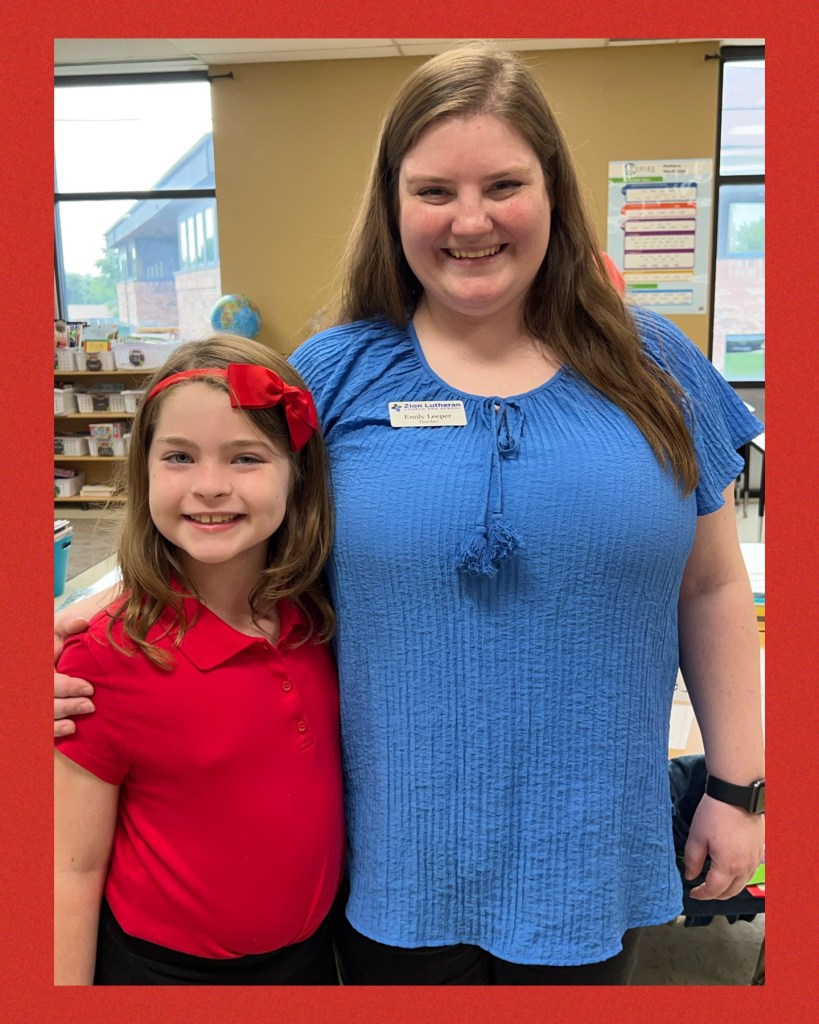 Miss Firminhac– My mini me has a young and energetic teacher this year. Miss Firminhac is new to Zion and came to us after completing two years teaching fourth grade in another state. She is a third generation Lutheran school teacher and we are thrilled to have her! The minute I met Miss Firminhac I knew she was a natural teacher. She is confident, kind and tall! What impressed me the most is how she got down on my mini me’s level and spoke directly to her in a soothing tone that eased any trepidations my mini me had about starting a new school year. With her inviting classroom and infectious smile, my “eight year old self” secretly wishes she had Miss Firminhac for a third grade teacher! I know my mini me is going to learn exponentially under the guidance of her dynamic teacher and will not only learn about the love Jesus has for His children but will be shown love by Miss Ferminhac as well.