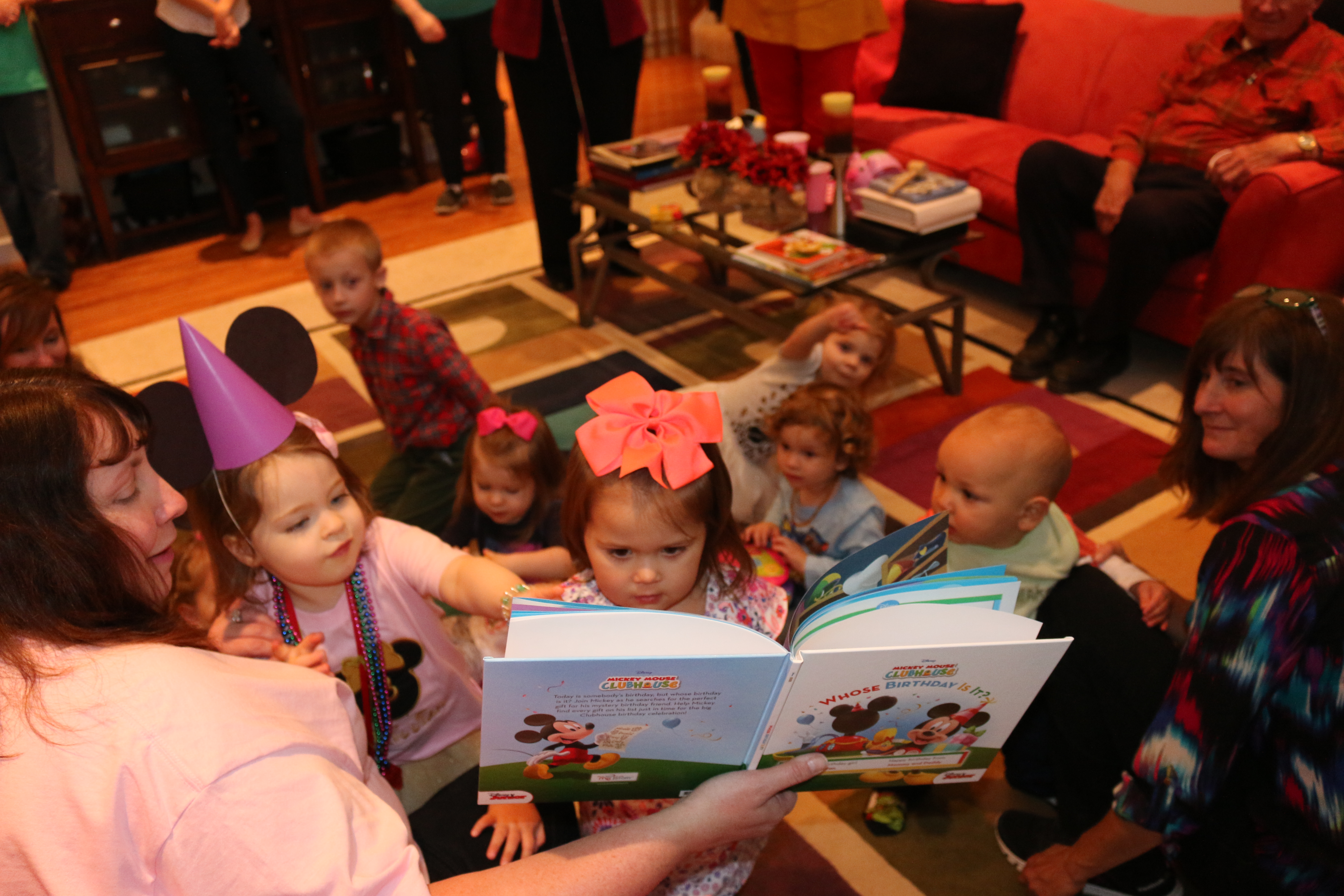 I ordered a personalized Mickey Mouse Clubhouse book called “Whose Birthday Is It?” from the company Put Me In The Story. The reader follows Mickey Mouse and the other Disney characters on a birthday treasure hunt filled with clues that uncover a special birthday party for “Lillian.” I read the story at the party and then had all of the guests sign the book.