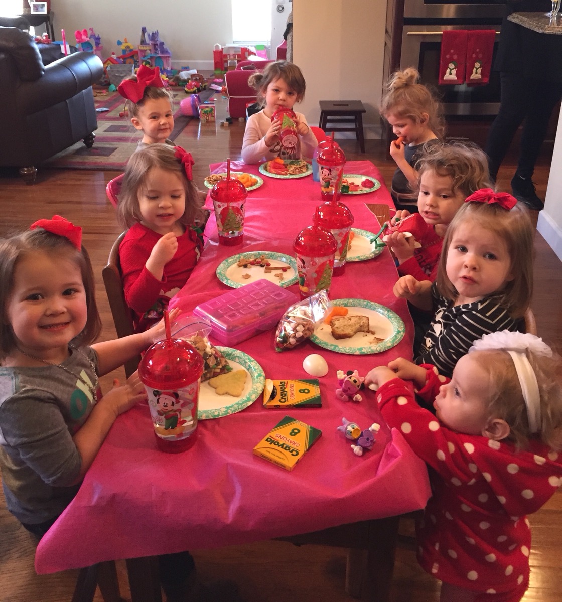 No party would be complete without a Christmas story. This year I chose to read “Little Robin’s Christmas” by British author, Jan Fearnley. Ms. Shirley, a family friend, gifted Lillian with the book last Christmas and we immediately fell in love with little robin and his giving spirit. The book also lets readers discover how robin got his red breast. The fable has become a new family favorite.