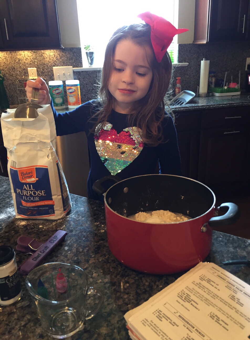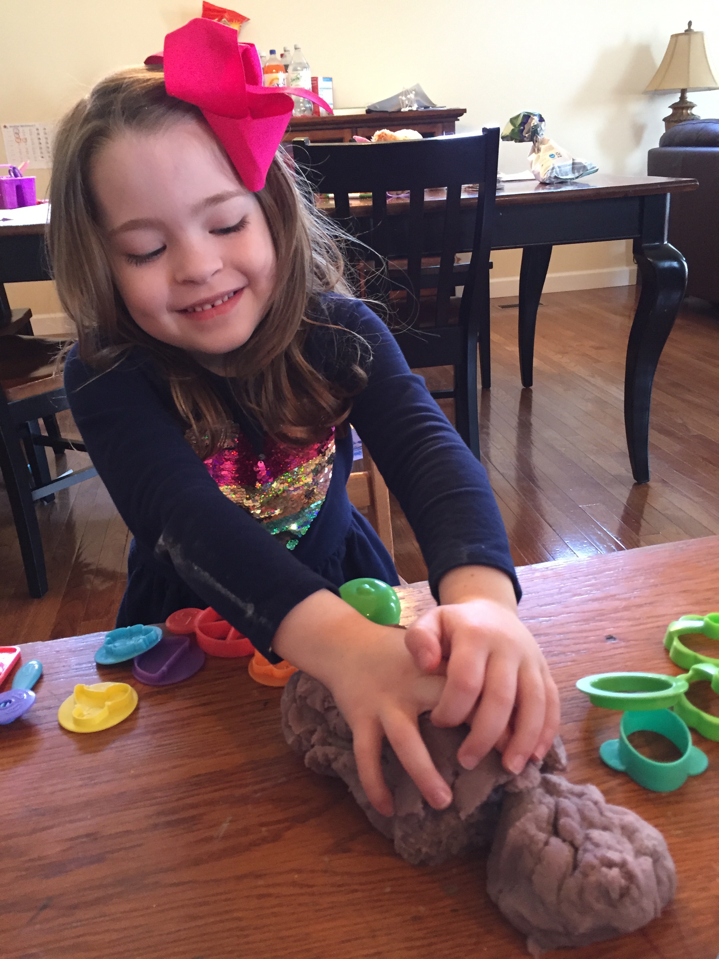 Play Dough- – Is there anything better than a giant batch of fresh play dough? My daughter enjoyed helping me make homemade play dough. As I stated in an earlier post, the best play dough recipes are the ones that require heat. I used my tried and true preschool play dough recipe, shared with me by a former teaching partner twenty-five years ago!! (How can I be that old?) Play dough making is filled with countless learning opportunities… math, measuring, science (color mixing) and following directions. My daughter requested purple play dough and we added a vanilla scent. Don’t forget to add a color and a scent. Some people add glitter for extra fun! Once your play dough is ready, use cookie cutters, scissors and straws as play dough tools. We made pretend cookies and constructed numbers. (roll the play dough into long skinny snakes and then construct numbers)